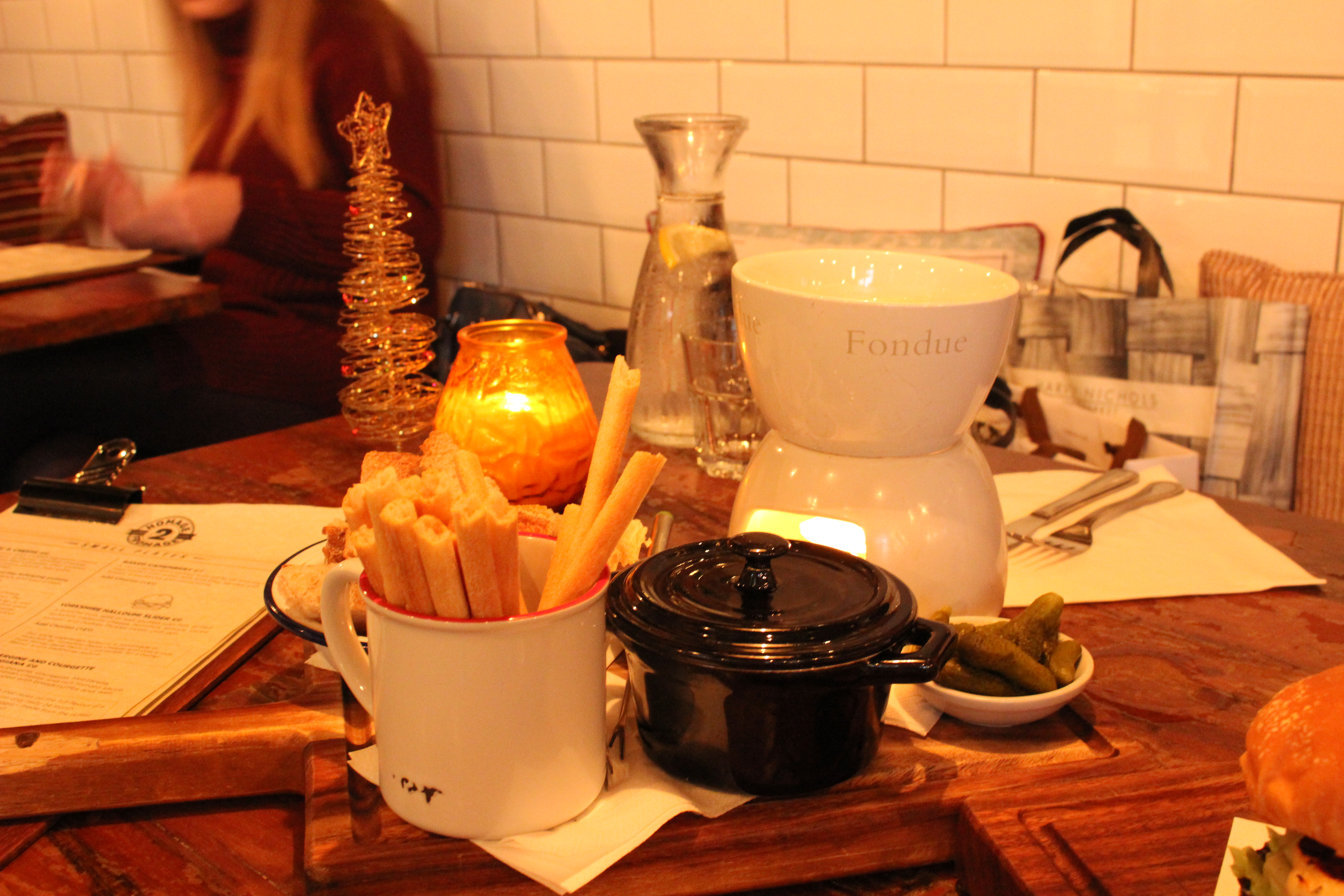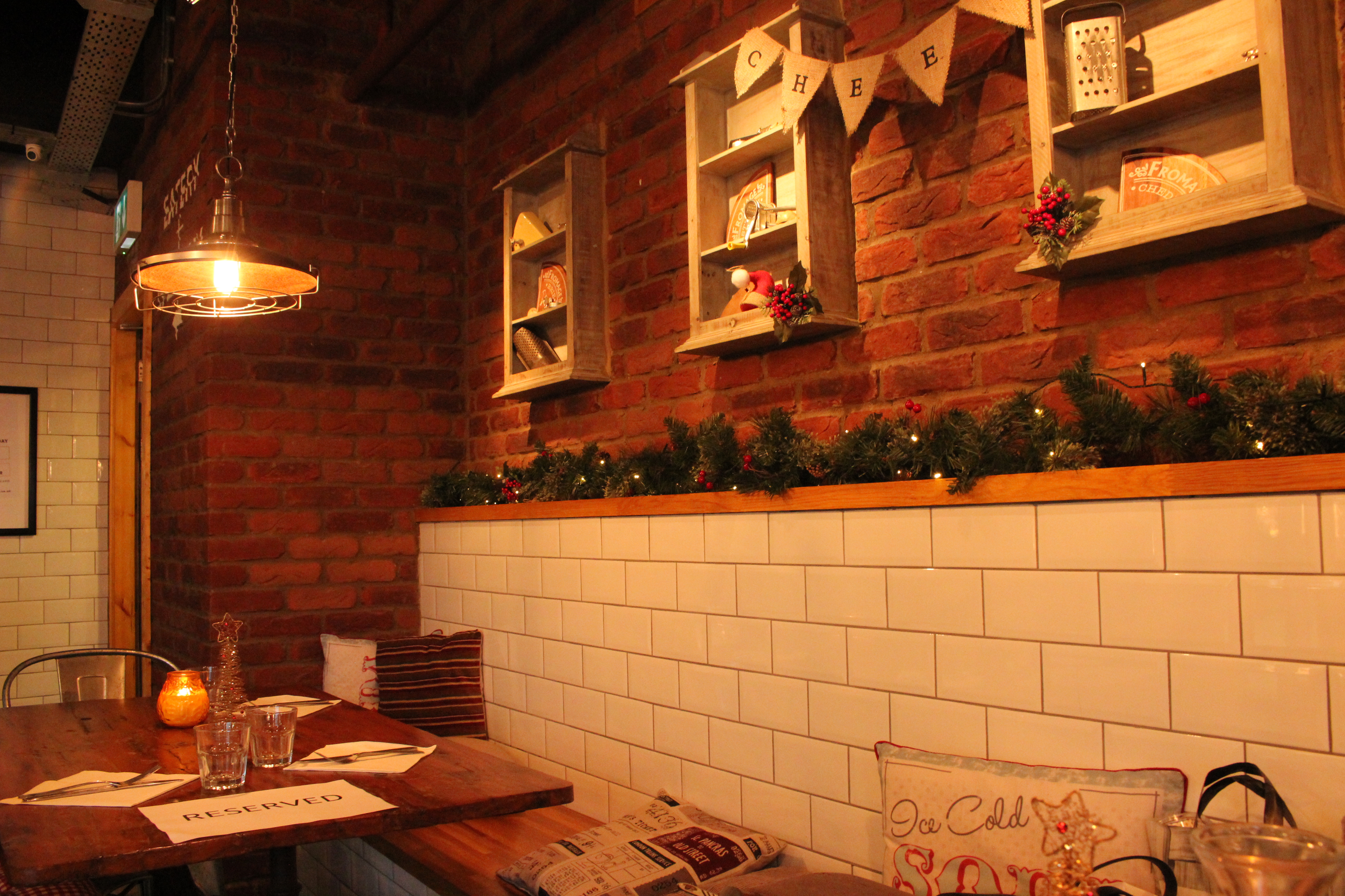 We braved the Christmas crowds for this cheese laden feast and it was totally worth it. First of all, the decor can only be described as chalet chic. It has a ‘just been skiing’ vibe and is the ideal cosy place to fuel up on comfort food and line your stomach for countless Christmassy cocktails.