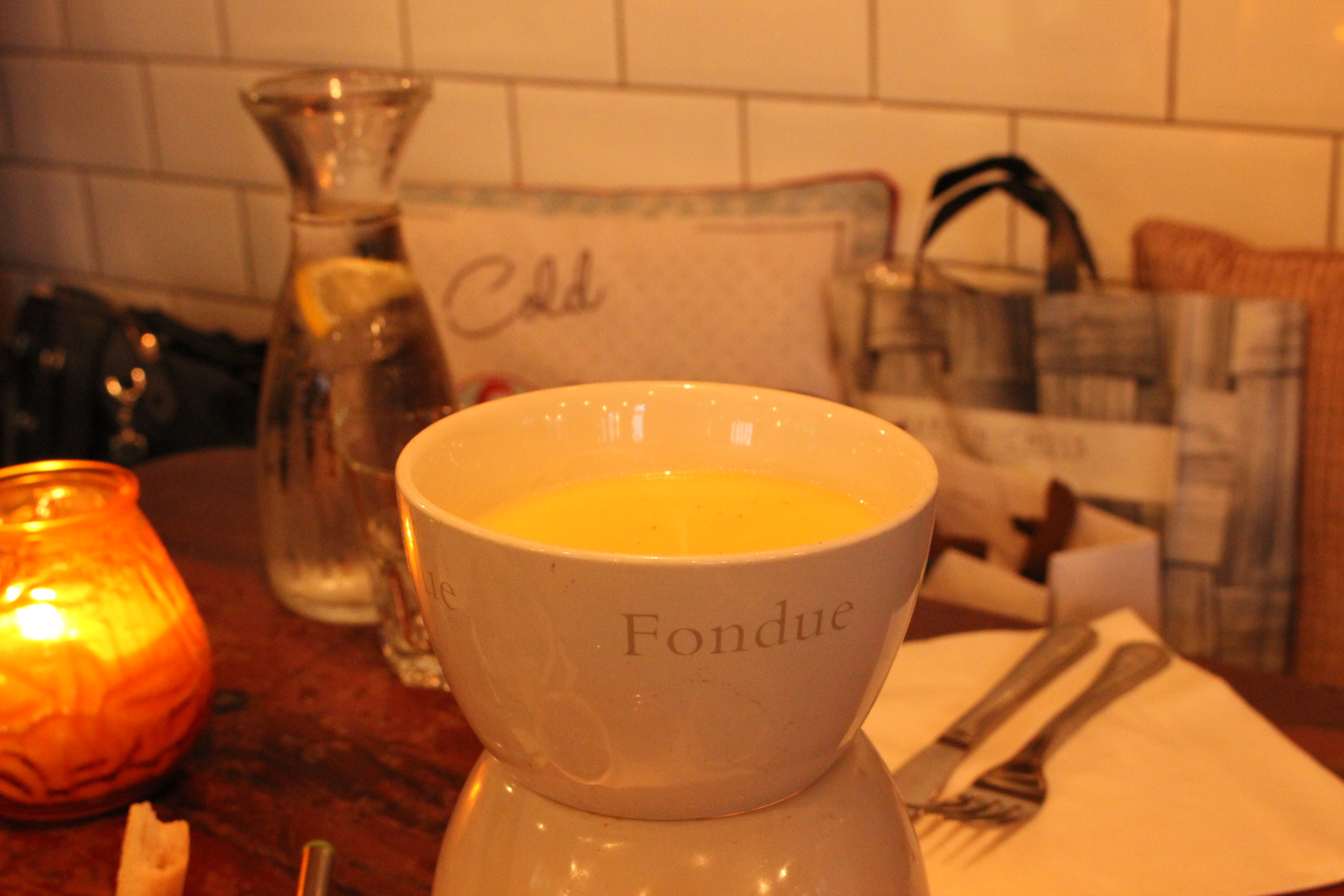 The fondue is delicious and you simply can’t visit this place without trying it. It’s just one big pot of molten cheese with a side of tasty things to dip into it.