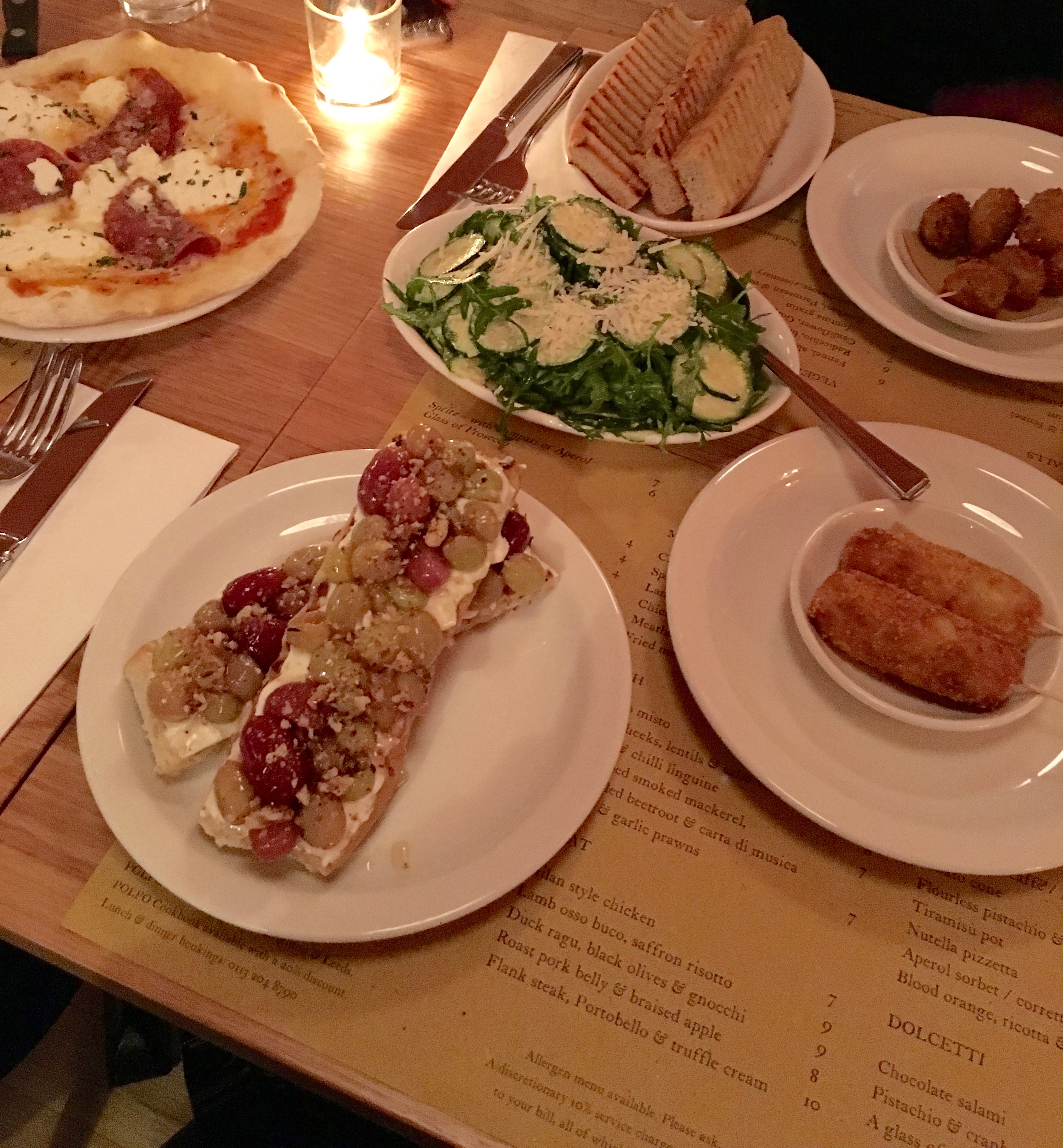 After being ill for a week and losing 4lbs I opted for carbs, carbs and wait for it… more carbs! Polpo is basically a magical place to eat in my opinion as you get to order a little bit of this and a little bit of that or in my case cheese and bread in various different forms. I ordered cheese croquettes and goats cheese bruschetta topped with roasted grapes and toasted walnuts which was delicious if not a little over jealous with the grapes.