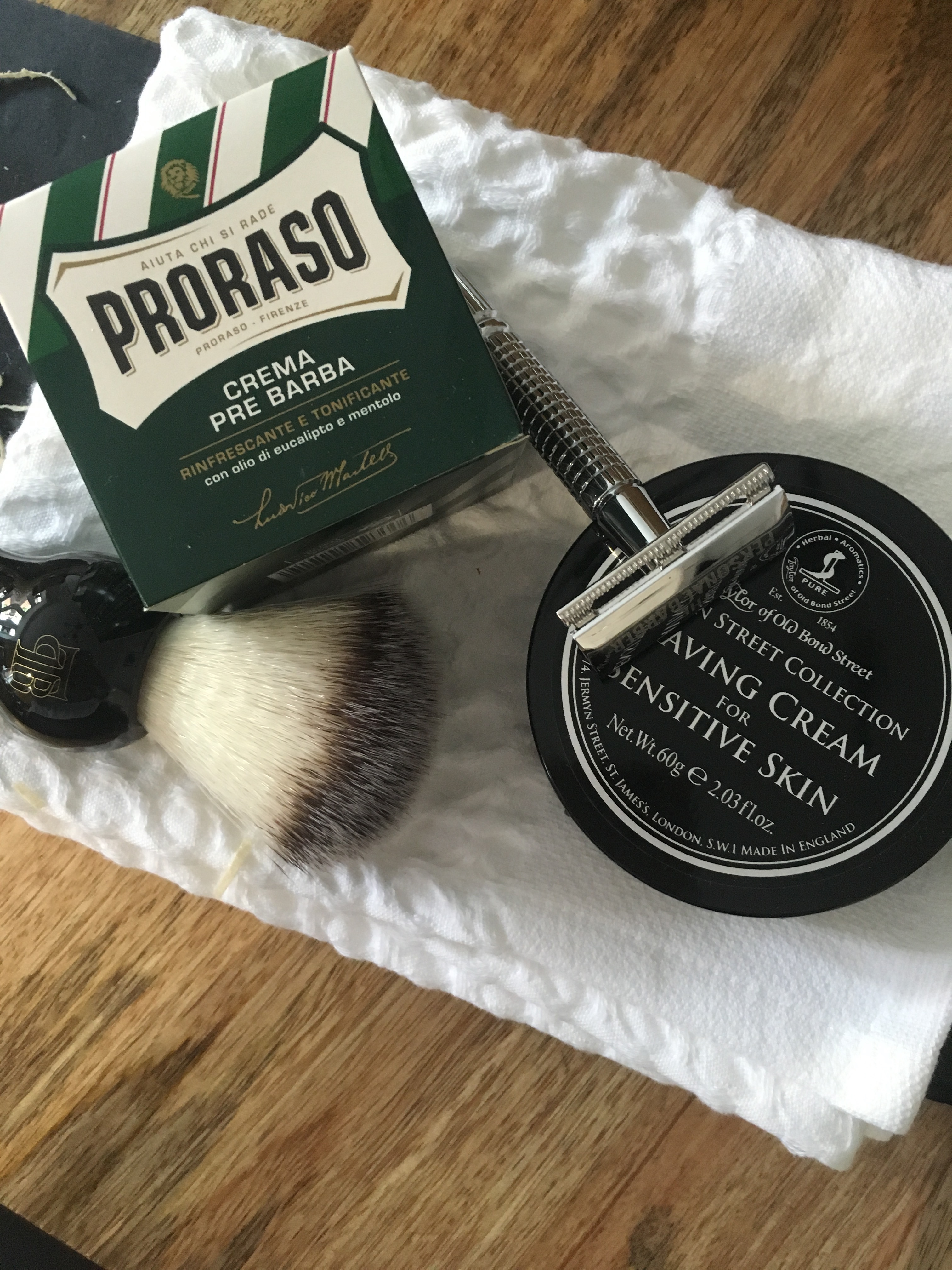 So, first up was the pre-shave cream that came in attractive green and white packaging. My husband was really intrigued by the pre-shave cream as he expressed that he would never have invested in a pre-shave product in the past as he didn’t think adding another step to his shaving routine was necessary but was pleased with the consistency and aroma. The Proraso brand is Italian and it has a menthol aroma that is quite powerful but not overwhelming.