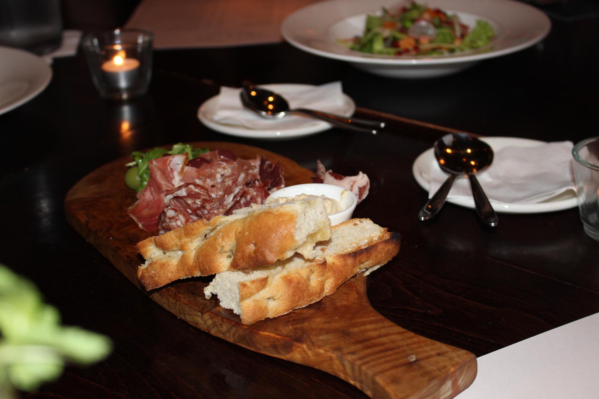 We were welcomed in from the cold with a glorious cocktail while we waited for the new dishes to arrive. First up were the new and incredibly fancy cheese and meat boards. They make the perfect sharing boards as starters if you fancy a change from their delicious garlic pizza breads. Both of the boards come with ramekins of hummus and a sprinkling of olives and sundried tomatoes.