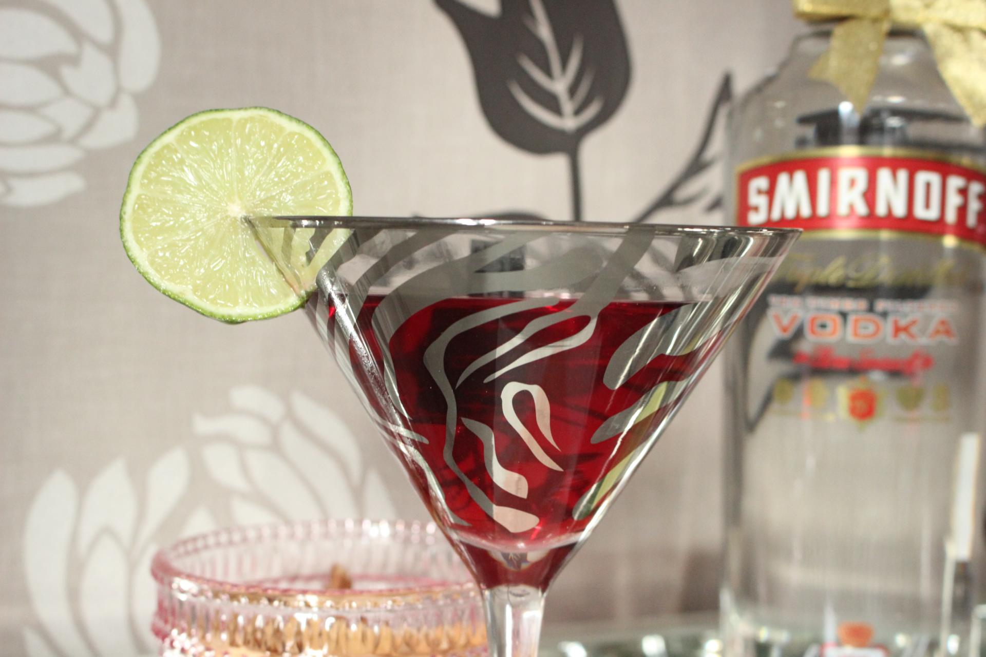 Begin with your cocktail shaker and add in a shot of Smirnoff. Next add in lime juice, cranberry juice and orange liquer. So, what makes this a Red Carpet cosmo? Simply add in a splash of Chambord, plenty of ice, shake and pour. Top up with champagne to add a touch of fizz. Any kind of champagne or prosecco will do but pink champagne is my favourite. Add a twist of lime to garnish.