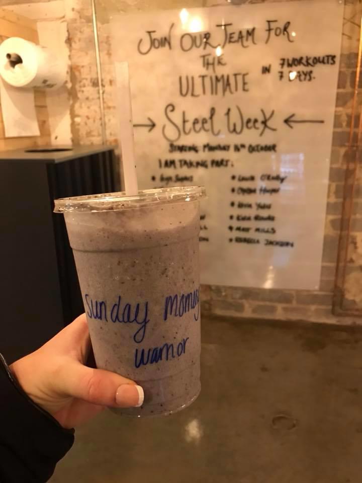 Today there is 8 people in my 12 o clock full body class with Abby, two of which are also doing Steel Week. We all start on the treadmills and begin the workout with some hard core sprints. I have to say, it’s much more fun to work out with other people and the dark is ideal so no one can see how much you sweat (or cry for that matter). The great thing about Trib3 is their wonderful trainers, they cheer you on by name and congratulate you when you push yourself out of your comfort zone. It’s like having your very own personal cheerleader. The treadmill sessions were longer today which actually made the class go quicker if anything and the playlist was on point as always. One minute you are doing donkey kicks (yep they are a thing) thinking I can’t do this, I can’t then your favourite song of all time kicks in and you’re like I can!! I can!!