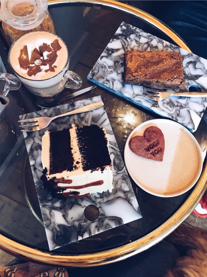 This was probably the best slice of cake I’ve ever eaten and I’m not going to lie, I’ve thought about it every day since. My other half ordered the most incredible looking hot chocolate and a brownie which he abandoned to eat my cake. The cakes come on the cutest marble slabs and add in the rose gold table rims and the pink and white walls (not to mention ALL of the cute puppies) it’s quite literally a blogger’s dream.
