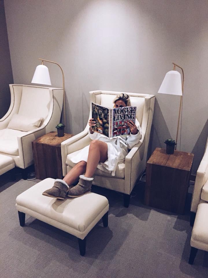 I love holidays but I don’t love washing and blow-drying my hair every day, wearing a full face of makeup every night and walking in heels all the time. I was genuinely excited to get my comfiest clothes on, put my hair up and go makeup free for a while. Also, after 84 magnums of wine, going to a spa is the perfect place to detox your body and rest your mind. I was over the moon to be somewhere where it’s acceptable to roam around in your robe and slippers. It was the perfect excuse to take my new Celtic & Co slippers for a spin. If you are in the market for a new pair, I couldn’t recommend them more. The team kindly sent me a pair of their cosy sheepskin slippers (I chose the cutest knitted pair in a pebble shade) and I popped them straight in my bag to take with me. I can’t live without my slippers, I hate being cold and my dog chewed the pom poms off my last pair, so I was very excited to receive a shiny new pair that looked really hardwearing without any fiddly bits for my dog to chew.